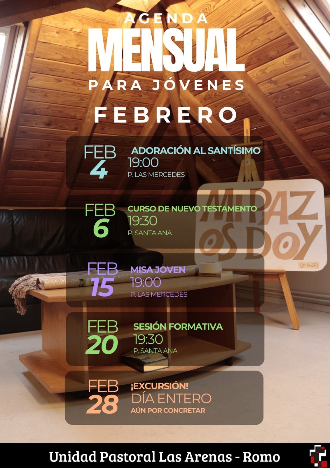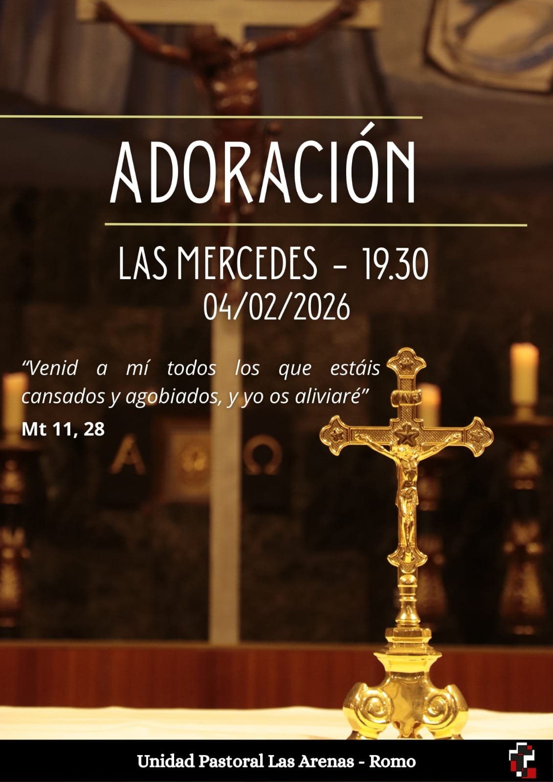 Asteazkenean, otsailak 4, hil honetako Santuaren Gurtza izango da, Las Mercedesen 19:00etako meza eta gero, ohi bezala abesbatza gazteak lagundurik.